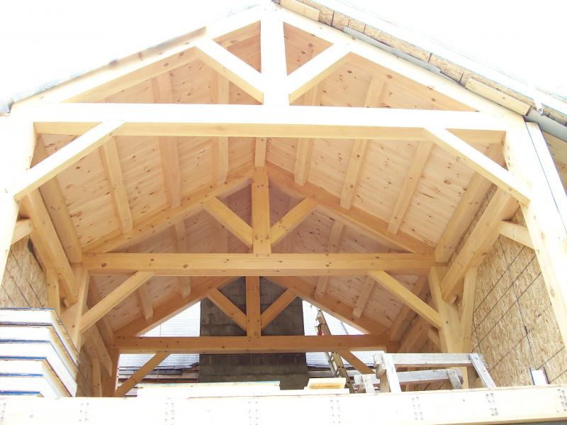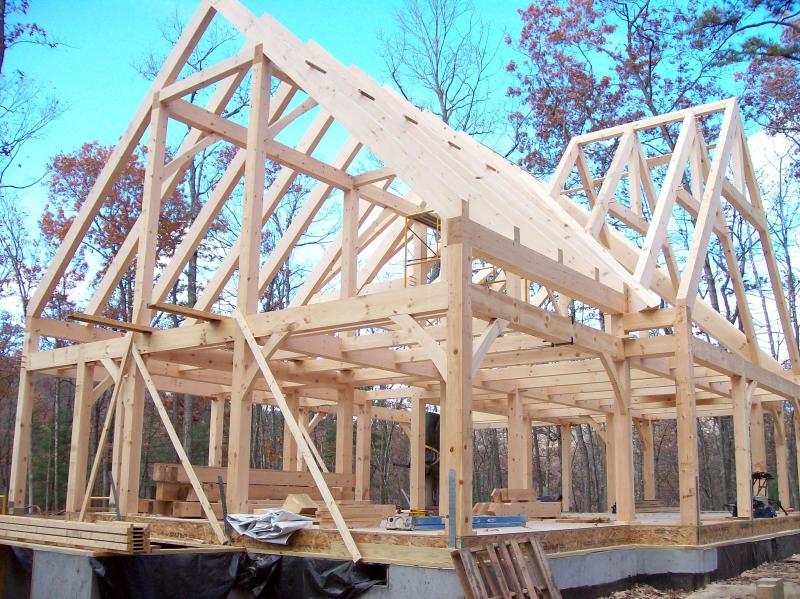 We offer handcrafted timber frames using traditional mortise and tenon joinery with 1" oak pegs. We work with a timber frame designer that creates the frame in 3d drawings for your approval before your frame is cut. Planed and sanded white pine timber frames start at $20 per sq. ft. and $19per sq. ft. for graded, planed and sanded white pine. Planed douglas fir frames start at $30 per sq. ft. We offer frame raising services and we can also cover your frame with SIPs (structural insulated panels). We also can provide timber frame kits for the do it yourself types.
